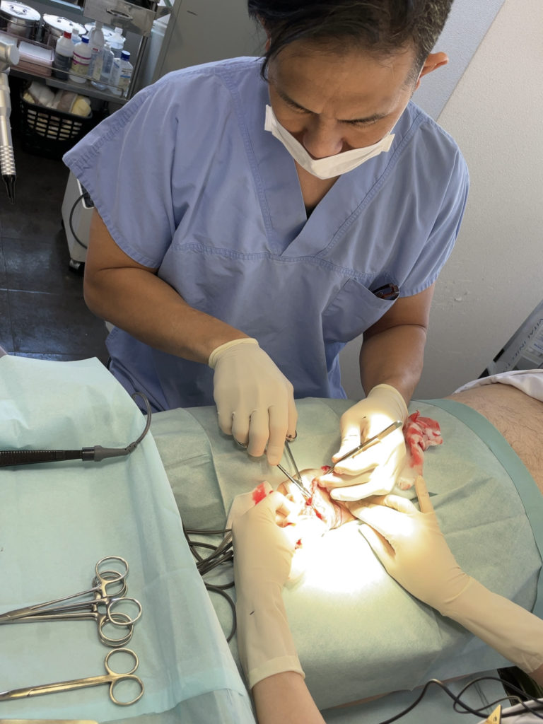 勃起時を想定した余分な包皮を切除し、切除範囲外は炭酸ガスレーザー、バイポーラを使用し除去をしていきます。