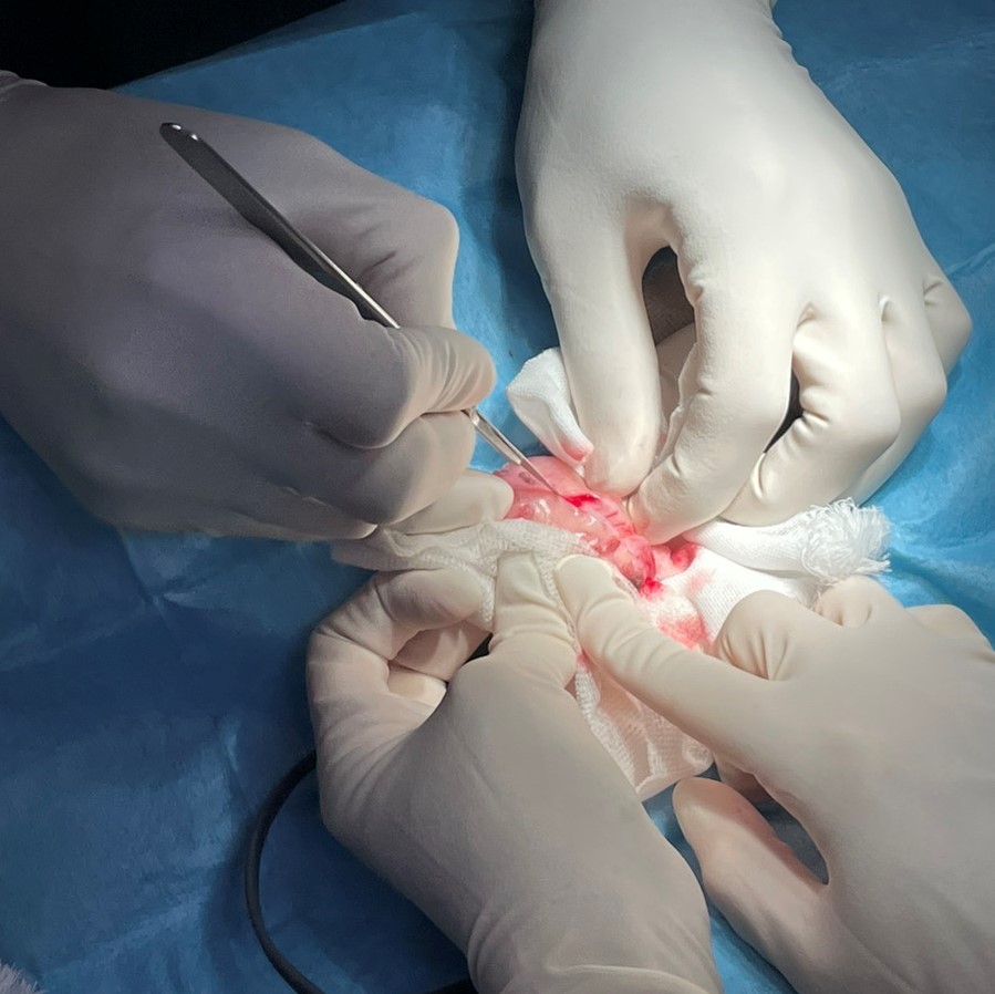 亀頭直下の包皮コンジローマごと除去していきます。