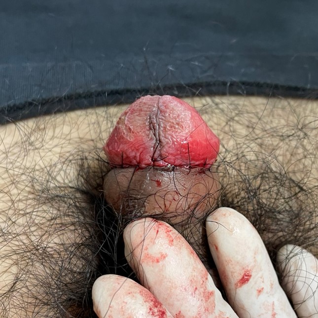 今回はコンジローマの治療をするついでに普段包皮が被っていることも気になるようで包皮切除(包茎手術)も一緒に受けていただく事をご相談のうえ決心頂きました。