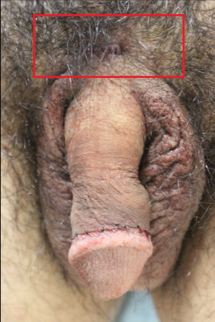 上記は治療前。ペニスが体内に埋まっています。