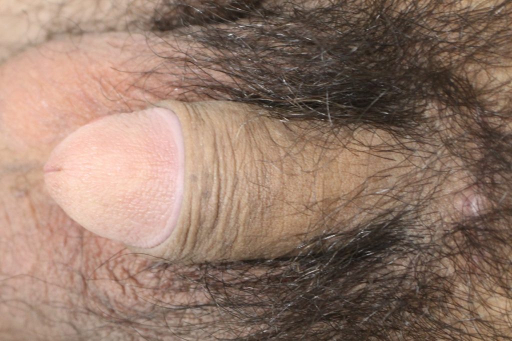 ご相談に来られる1か月ほど前からペニスの包皮の先端がきつくなり、ひび割れる状態をくり返すうちにむけなくなってしまいました(上記画像参照)。