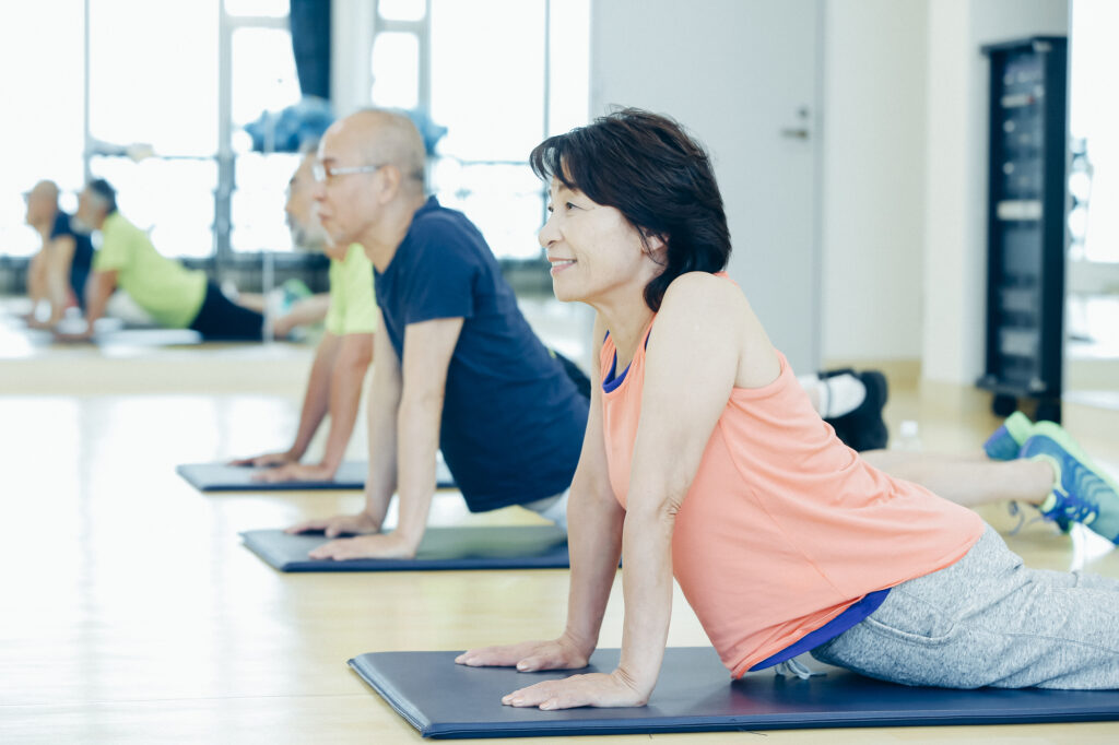腰を上げたときに腰椎(腰の部分)だけが反りすぎないよう、おへそを引き込んでお尻全体を持ち上げる感覚です。もし腰に痛みがある場合は無理をせず、動きを小さくするか休止しましょう。