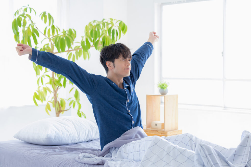 平日と週末で寝る時間・起きる時間がバラバラだと体内時計が乱れ、睡眠の質が低下します。できる範囲で毎日同じような時間に寝起きするように心がけましょう。朝はしっかり太陽の光を浴びると夜に眠気を促すホルモン(メラトニン)が出やすくなり、スムーズな入眠につながります。