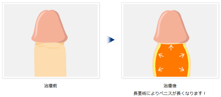 埋没陰茎長茎術の最大のメリットは、目に見えてペニスが長くなることです。 個人差はありますが、埋もれていた陰茎部分を引き出すことで約2~5センチ程度の長さ延長が期待できます。