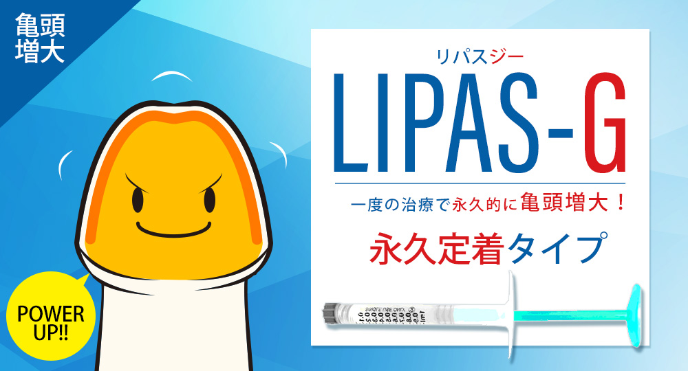 当院では、リパスG(LIPAS-G)による亀頭増大治療を行っています。リパスGは「永久的に持続する注射治療による亀頭増大法(the ever-Lasting Injecton Penis Augmentation System-glans)」の略称で、以下のような特徴があります: