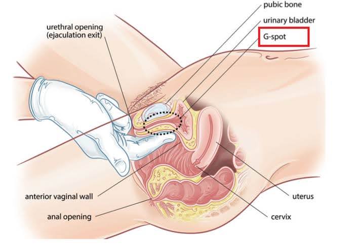 膣口から約3〜5cm奥の上壁(おへそ側)付近にある敏感なエリアがGスポットです。ここを刺激すると、実はクリトリス内部の一部にも間接的に刺激が伝わります。クリトリスは外に出ている“小さな突起”だけでなく、内部に脚や根元の部分が膣の周りに伸びている構造なんです。