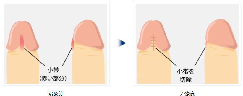 亀頭裏側の「包皮小帯」が敏感で早漏の原因となっている場合には、小帯切除術が効果的です。包皮小帯は亀頭と陰茎をつなぐリボン状の組織で、この部分の過敏さが早漏を引き起こすことがあります。