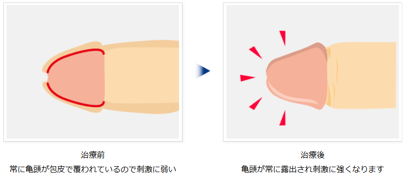 何より手術を受ければその日のうちに亀頭がきちんと露出できる状態になり、長年の悩みが一気に解消するのが最大のメリットです。自力で何ヶ月も苦労することを考えると、手術による治療は圧倒的に即効性が高く確実だと言えます。