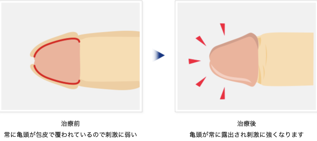 手術後は亀頭も常に露出した状態となるため、亀頭、包皮内板の過敏な状態が改善されます。