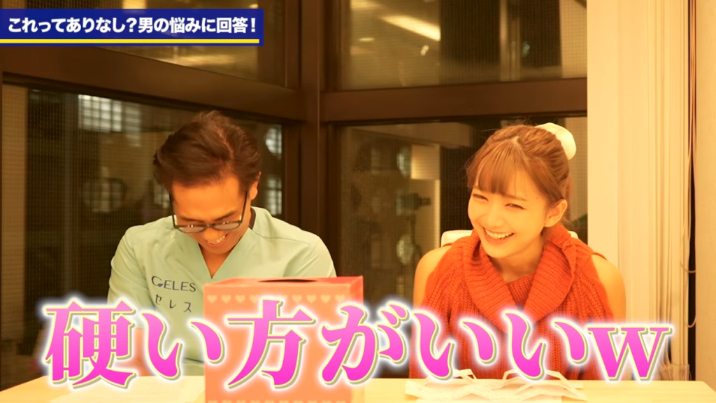 星乃莉子:そうですね。でもやっぱり硬い方がいいのはいいい。プレイがしやすいっていうのは正直硬い方がいいのかなって思います。体位を何回も変えるとか、1回抜くっていうのがあると、やっぱり萎えやすいポイントではあるので、体位を変える…変えたいとか、プレイに幅を持たせたいのであれば、やっぱり硬い方がいいのでは、と思いますね。