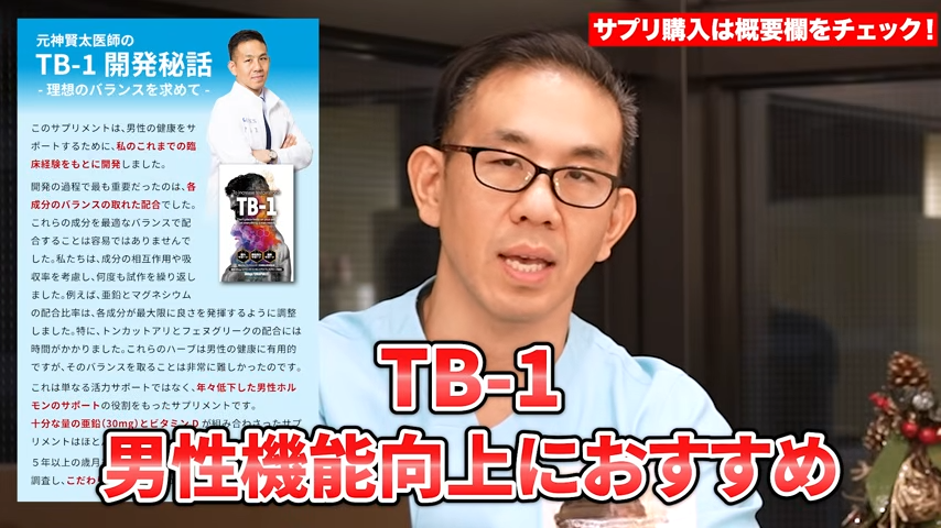 元神先生:まあ、何かこれをやれば増えるってものではないですから、やっぱり日常生活の食事だったり睡眠とか運動だったり、そこがまず大事ですよね。そこを頑張ってやった上でのTB-1サプリだったりっていうものがいいと思いますね。