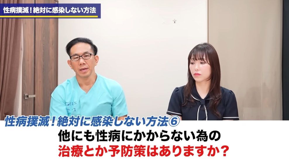 橘:分かりました。なのでこういう症状が出てから治療とかご相談いただくっていう事は、まあ基本的な流れとしてあるんですけれども。まずその前にですね、性病にかからないために、その症状が出る前というか感染する前に、予防できる方法っていうのはあるんでしょうか?