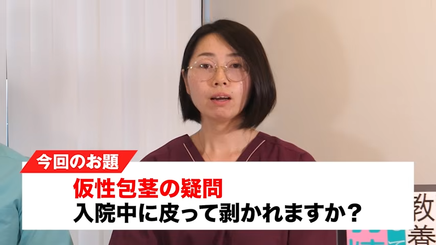 元神先生:でもカントン包茎ぐらいだったらね、カテーテルさえ入れればすぐに元に戻せば大丈夫なので。本当に真性包茎でピンホールで全く剥けない方は困っちゃうので、やっぱり手術したりというのはありますけど。あれどうするんですか?入院前に確認するんですか?看護師って。