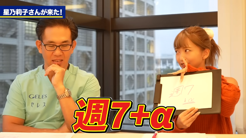 星乃莉子:スポーツをしないと週7+αになるんですけど、スポーツをすると発散されるので、週7以下かなって感じですね。