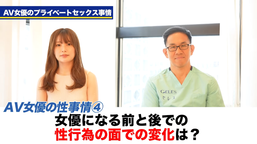 橘:女優になる前となった後での性行為の面での変化。これは、さっきもお話があったように、こう頻度がほとんどなくなったっていうところだったと思うんですけど、例えば仮にプライベートでする時ってこう相手に求めるハードルが上がるとか、それこそこう技的になって、こういうのがしてほしいとか、そういう部分って変わったりとかってしますか?女優の私と女優じゃなかった私の違い・