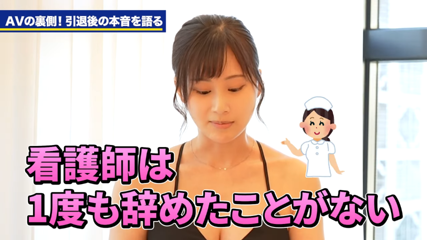 橘:ちなみにこのAV女優としての活動の傍らですね、例えば看護師として勤務してたりとか、あとはメンズエステでの勤務っていうこともあったと思うんですけど、これも結構長い間並行して続けてたってことなんですか?