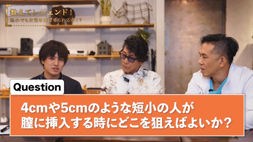 橘:女性の「いいポイント」というか、「気持ちいいポイント」って、女性によると思うんですけれども、4cmや5cmのような短小の人が膣に挿入する時にどこを狙えばよいか?