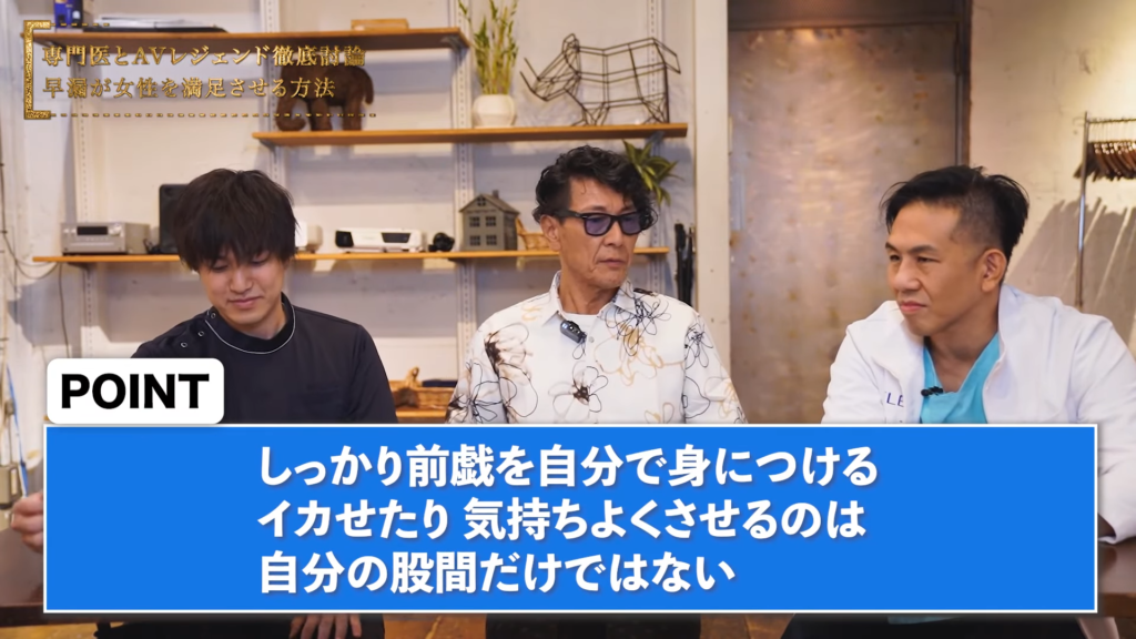 橘:そうですね。鷹さんにはですね、実際早漏や短小などですね、結構それが気になっていてセックスに消極的な男性が非常に多くいますので、そこをカバーできるようなテクニックですとか、メンタルの維持方法ですとか、そういった部分をいろいろ聞かせていただきたいと。そこで、先生には医学的に早漏の改善方法ですとじゃ、そういった部分をお話をしていただきたいと思います。