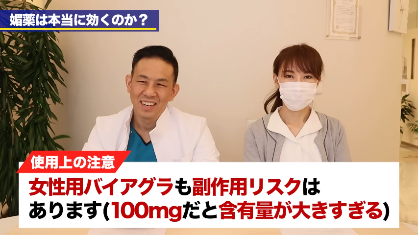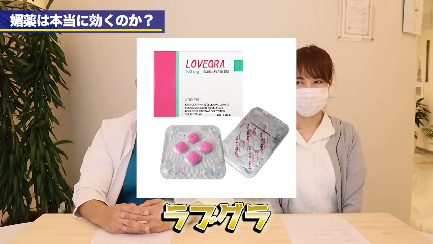 橘:そして、もう1つが商品名がラブグラというものでして。グラというわけですから、いわゆる女性用のバイアグラというもので。なんとなく女性用のバイアグラだっていうのを聞いたことはあるんですけれども、調べてみると、この成分がシルデナフィル100mg ということで、バイアグラと全く同じ成分なんですね。そして100mgなんですよ。