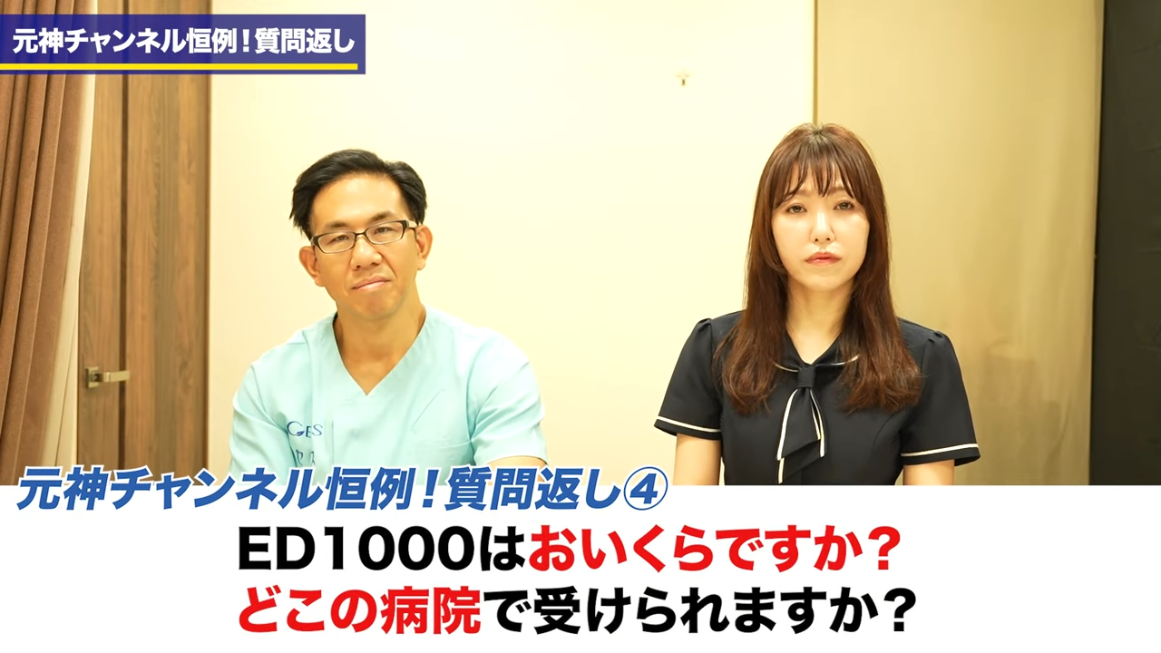 橘:では次ですね、「ED1000っておいくらですか?どこの病院で受けられますか?」という質問なんですけれども。