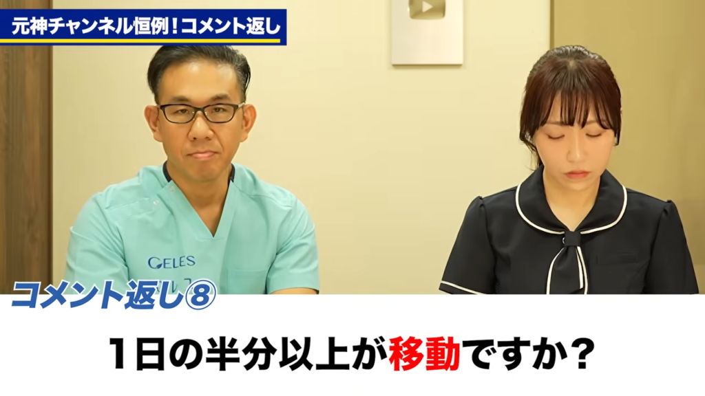 橘:まあこの方が先生のそのライフスタイルを気にされてるのか、1日の半分時間移動になりますかってこう、診療時間を気にされてるのかちょっと分からないですが。