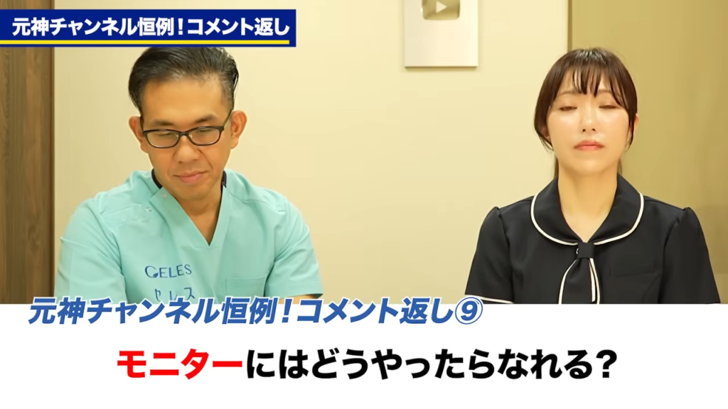 橘:意外とモニター希望がそれなりにあってですね、YouTubeのモニター出演したいという方もいらっしゃいますので、その場合はぜひ予約の時に「モニター希望です」という風に言ってもらえれば、すぐに対応することが可能ですので、その際はご相談いただければと思います。