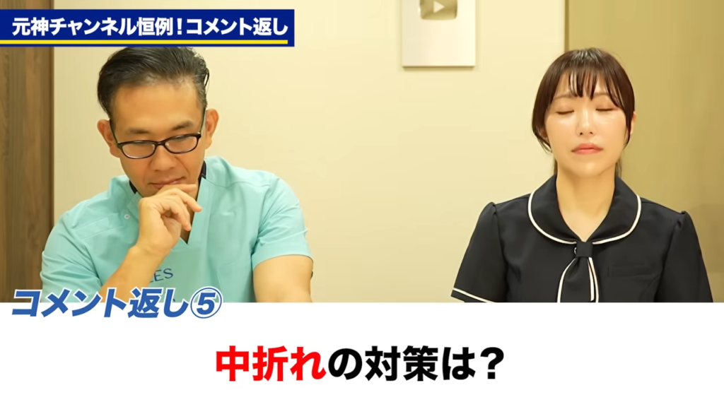 橘:皆さんいつも元神チャンネルご覧いただきありがとうございます!本日もですね、恒例のコメント返しを行っていきたいと思います。日々多くの動画を上げておりますけれども、その動画の中でもコメントをたくさんいただいておりまして、今回もですね、ちょっとコメントをピックアップさせていただいて、それに先生に直接お答えいただこうという企画となっております。動画いつも毎回コメントいただける方とかもおりますし、すごく参考になりました、勉強になりましたという風にありがたいお声をいただくこともありますが、実際にお悩みというか、「これってどうなんですか?」っていう質問を今回は抽出しておりますので、それにお答えしていこうかなと思います。じゃあ早速質問1つずつ見ていきたいと思います。じゃあ早速1つ目いきます。