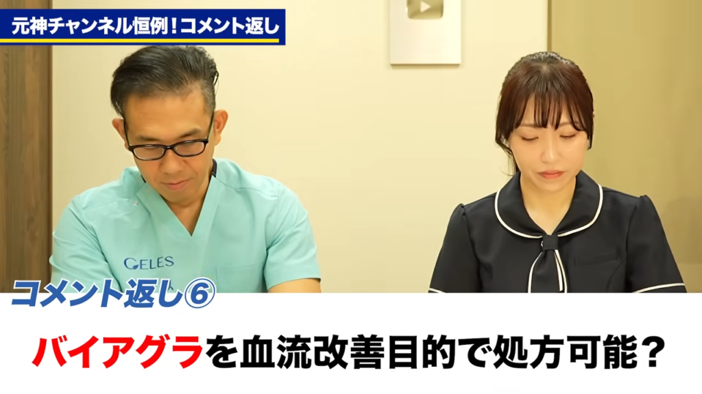 橘:じゃあ続いての質問。「バイアグラはED症状がなくても血流改善目的で処方してもらうことは可能でしょうか?」