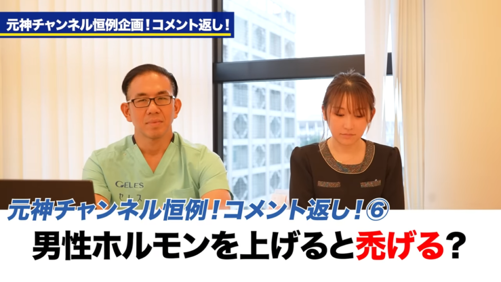 橘:では、次に男性ホルモンについての質問ですね。「男性ホルモンを上げるとハゲるんですよね?」という質問。