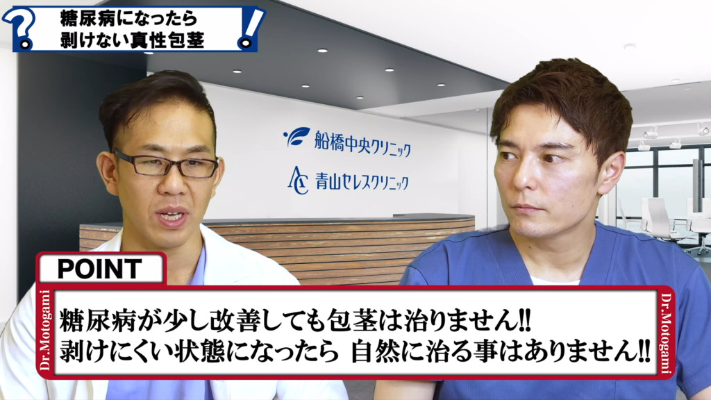 元神先生:まさに今の話の通りですね。決して珍しいことではありませんから、糖尿病の方が包茎になることはよくありますので是非ご相談ください。