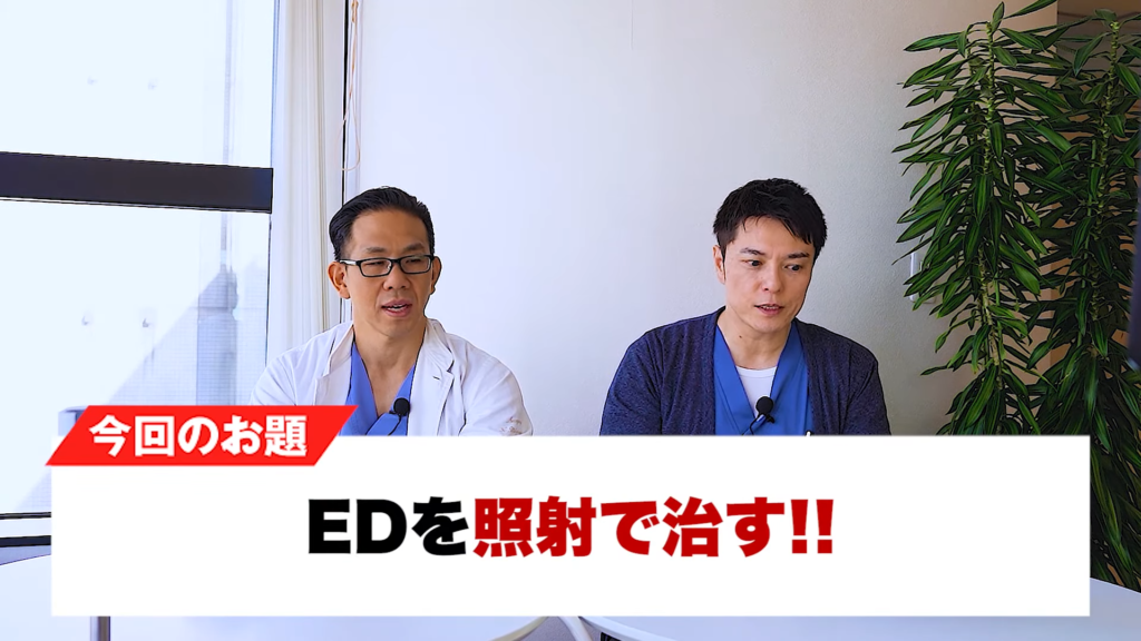 元神先生:やっぱりEDは男性の基本ですからね。なんとしてでも治したいというのはありますよね。僕の医者としての使命もあって。もちろん薬も非常にいいんですけども根本的には治りませんので、衝撃波をあてることによって血管が再生されますから非常にいいと思います。併用することも可能です。薬と併用しながら血管を増やしてよりEDを改善させる、より勃起を強くさせることができますよね。