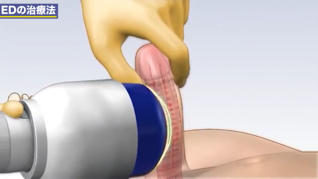 男性カウンセラー:ペニスにあてて衝撃波をあてると。