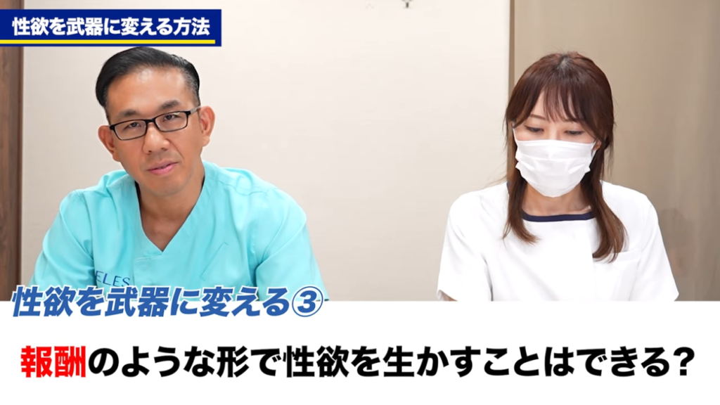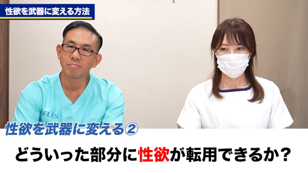 橘:そうですよね。特に学生の時とか、若い時はやっぱりこう授業中も頭の中では別のこと考えてしまうみたいな人も多いと思います。で、ただ、この有り余る性欲というところに対しては、決して悪ではなく、この性欲が武器になるということも言われているということなので、今回はこの先生にですね、この溢れる性欲を人生の成功エネルギーに変える方法というようなテーマでお話を聞いていきたいと思っております。溢れる性欲は、決して悪ではなく、人生の成功エネルギーに変えることができる武器にもなります。