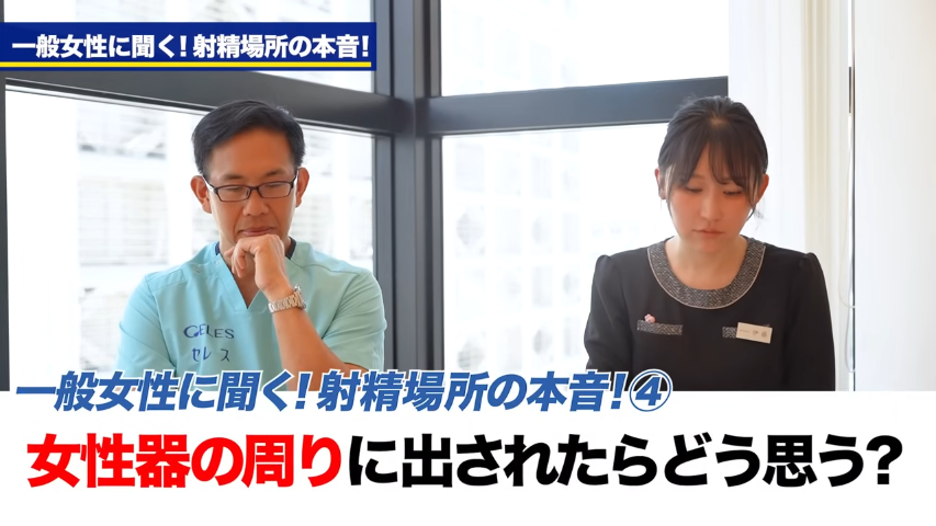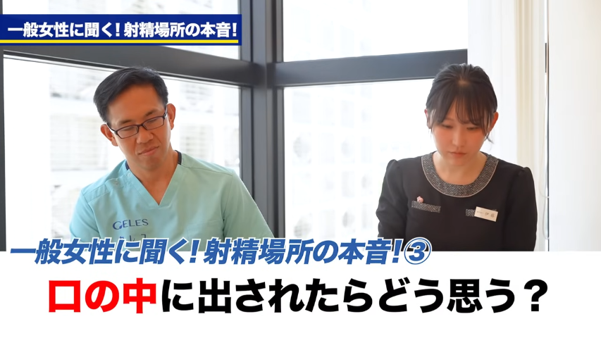 橘:結構精子ネタがうちのチャンネル意外と伸びる企画でして皆さん、結構男性の方、そういう精液とか精子射精に対する関心って意外と高いことがわかりました。なので、今回は射精場所ということで、口とか顔だったりとか、そういう。部分について一般女性はどう思うかっていうところをちょっと今回は、聞いていきたいなと思います。で先生、まず射精についてなんですけれども、男性側の欲望として、例えばこう膣内に射精をしたいこれ今後的な部分にしてます。生殖行為としてあると思うんですけれども、それ以外でこの場所にこう出したいみたいな、その欲お持ちの男性っていうのは、これどういう心理なの?
