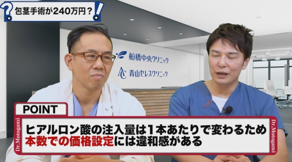 亀頭増大や強化って量が必要じゃないですか、肝心なのは量なのに1本っていう金額でスルーしちゃうってのが不思議でならない。自由診療って名の下なので、何をやってもいい?値付け自体は悪くないわけですか?
