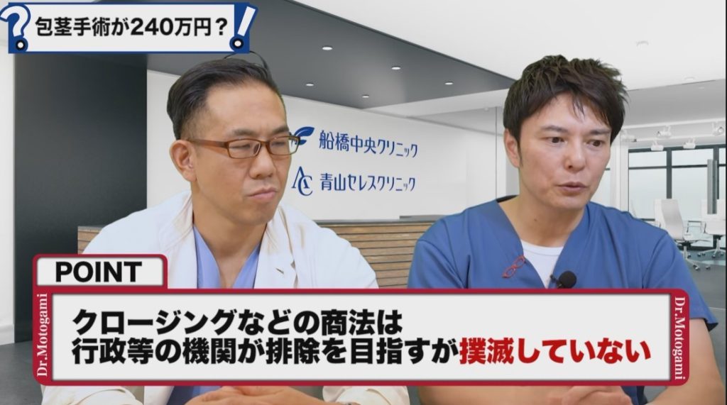 男性カウンセラー:こういったクリニックだとクロージングって言うらしいです。クロージングっていうのは落とし込んでいくわけですから、最初からそういうつもりがあるのかもしれません。この類の商法っていうのは東京都とはじめとした行政、国民生活センター、消費者庁が長年、注意、指導、警告がされているんですけども、なくならないですね。