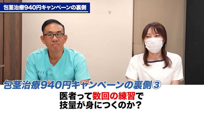 元神先生:あともう1つ、文春の記事で取り上げていたのが、FINクリニックと同じ会社が経営しているeクリニック(美容クリニック)というのがあるんですけど、そのeクリニックの医者に包茎治療を学ばせるスケジュールとかが載っていたり、経験の浅い人が包茎手術をするみたいな。もしかしたらすごく安い値段でできるかもしれませんが、あくまでも経験の浅い医者が練習台として手術をするということですよね。