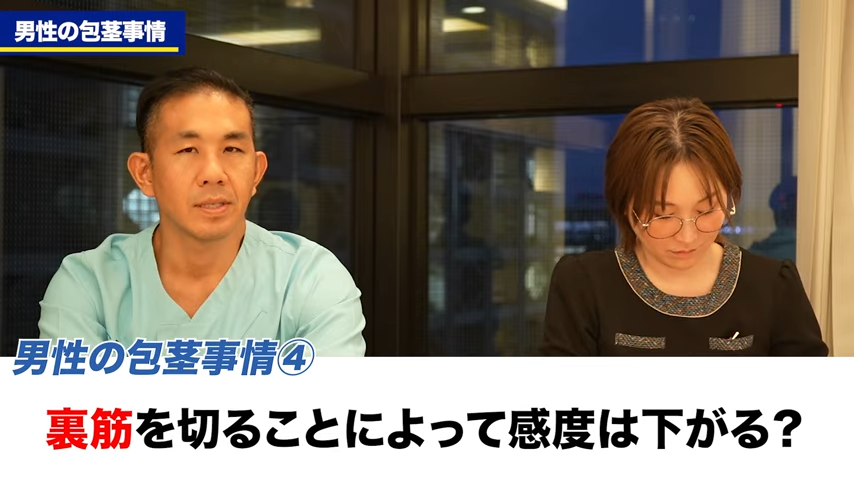 橘:あとはもう一つ聞かれるのが、いわゆる裏筋と呼ばれる部分を手術によって切ることによって、感度が下がるのではないかというふうに質問を受けることもありますが、これはいかがでしょうか?