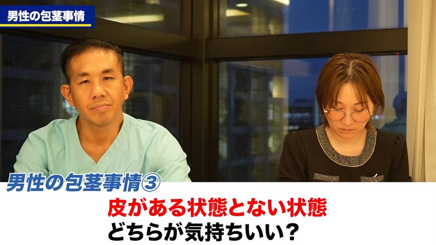 元神先生:逆に気持ちよくなる可能性は高いというか、亀頭が露出することによって。これ逆にクリトリス包茎という女性の包茎、クリトリスが皮被ってる治療をたまに僕はやるんですけども、クリトリスが露出することによって、より気持ちよくなったという女性がほとんどですから。包茎治療に関しては。