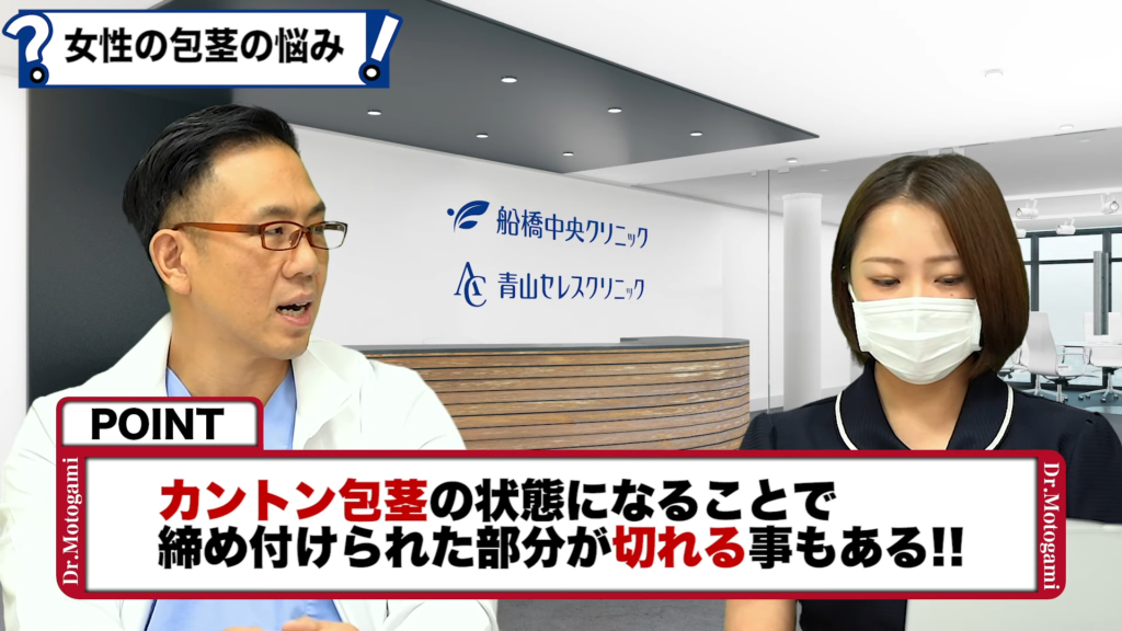 元神先生:いや、すれた結果、いわゆるカントン包茎になっちゃうんですよ。カントン包茎で首が絞めつけられるようなところが切れていたりするんですよね。