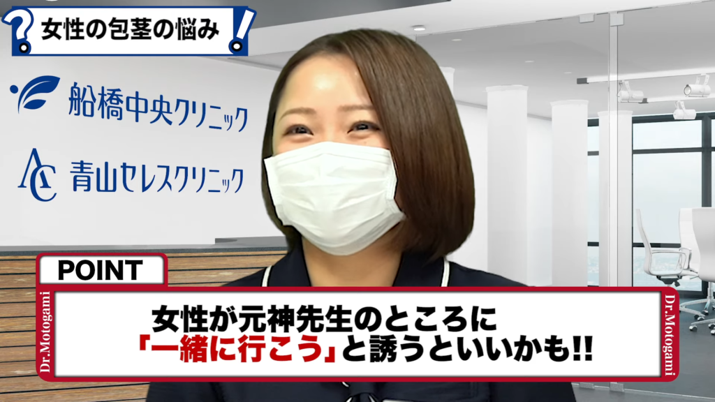 男性カウンセラー:よろしくお願いします。一般女子代表として、今回もカウンセラー石橋さんに参加してもらいます。石橋さん、20代前半一般女子代表の意見をまたよろしくお願いします。今回は元神先生の元に寄せられた、女性が持つ包茎の悩みについて、20代一般女子石橋さんにも一緒に答えてもらうという企画です。石橋さん、包茎に関する悩みは男性だけではなくて、パートナーである女性からも結構寄せられるんです。その悩みについて、元神先生先生と一緒に石橋さんにも一般女子として回答してもらえたらと思います。