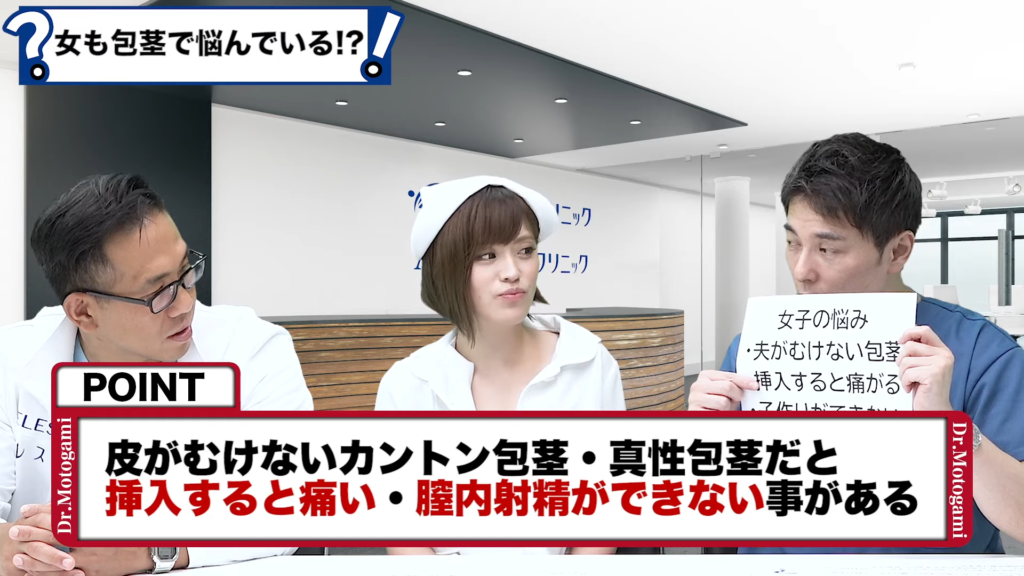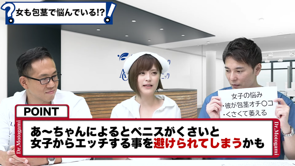 今回は女性ユーザーさんから寄せられた彼氏や旦那さん、お子さんの包茎についての不満、悩み、質問について私、板垣あずさと元神先生が答えていきます。痛くてセックスできない、皮がむけない、くさいなどバリエーション豊かです。