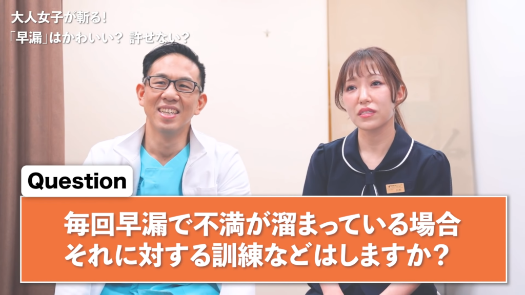 橘:じゃあ「早漏だったら治療しなよ」っていうところもなかなかハードルは高いと思うんですけど。それは川村さんとしてはすすめちゃいますか?