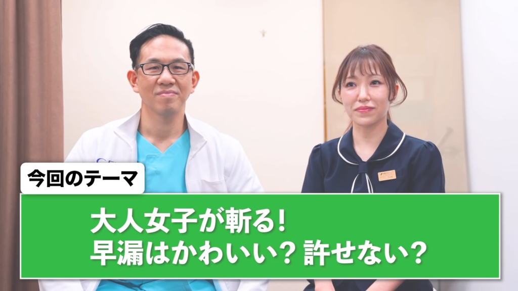 橘:それでは、本日早速の企画です。大人女子が斬る!早漏はかわいい?許せない?当院でも相談数が多い「早漏」、大人女子達はそんな早漏君をどのように見てるのか?一般女子代表、そして大人女子代表として川村さんに早漏に対しての意見を聞いていきます。