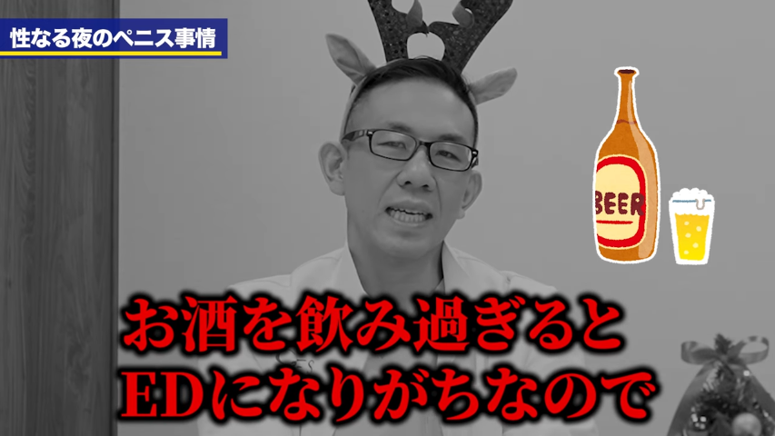 元神先生:若い人はあまり関係ないと思いますけど、30代以降になるとちょっと、アルコールの影響は多少EDに関係してきますよね。