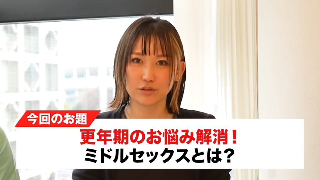 橘:SEXに対しての意識とか、気持ち的な部分でいうと、おそらく10代とか20代で、あんまりSEXに対する部分って、むしろすごく楽しいもので、良いものでみたいなところの、気持ちいいもので、すごくプラスな面が大きいと思うんですけれども。やはり年齢を重ねていくにつれ、SEXに対する悩みというのが徐々に増えていく方が多いんですね。これはもちろん男性に限らず女性も同じだとは思いますので、今回は今タイトルで更年期と言ったんですけれども、中高年の男女がよくあるお悩み、SEXに対するお悩みについての解決法っていうのをお話していければなと思っています。ぜひご夫婦・カップルでこの動画をぜひ一緒に見ていただければと思います。