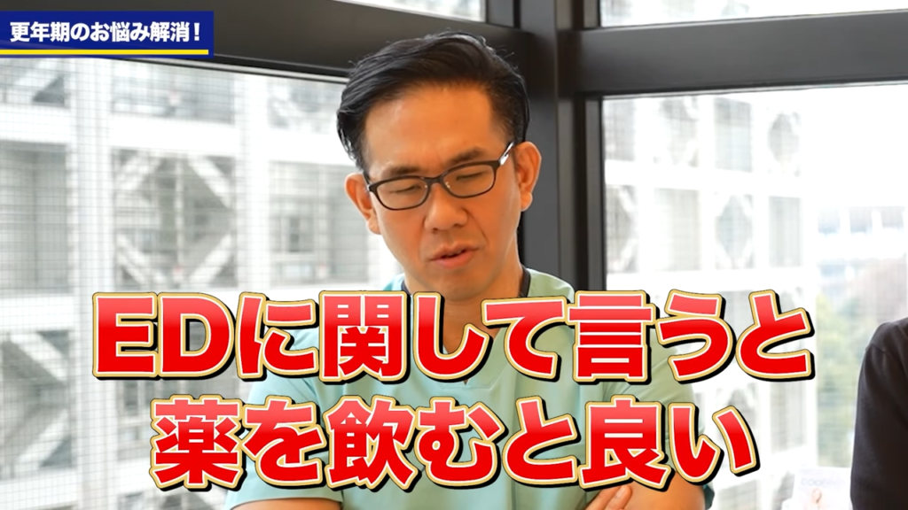 橘:とにかくSEXっていうのは、お互いにとってすごく良いものであり、なるべく長くするべき。まずはこういったご自身の悩み、特に男性の場合は、それこそ最初にお話した、性機能の勃起とかっていうところのお悩みだったりがある場合は、まずはそこへの対策っていうのを、早め早めにやっていくべき?