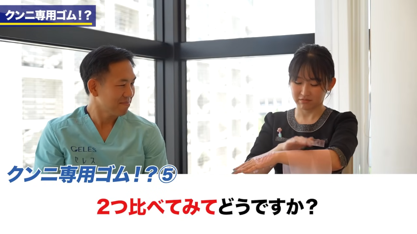 橘:今回はですね、海外で現在流行っているというクンニ専用のゴムっていうものですね。紹介していきたいと思うんですけれども、先生、このクンニ専用コムっていうのは、日本ではあまり聞き馴染みがないんですが、これ、海外で流行ってるっていうのは本当なんですか?