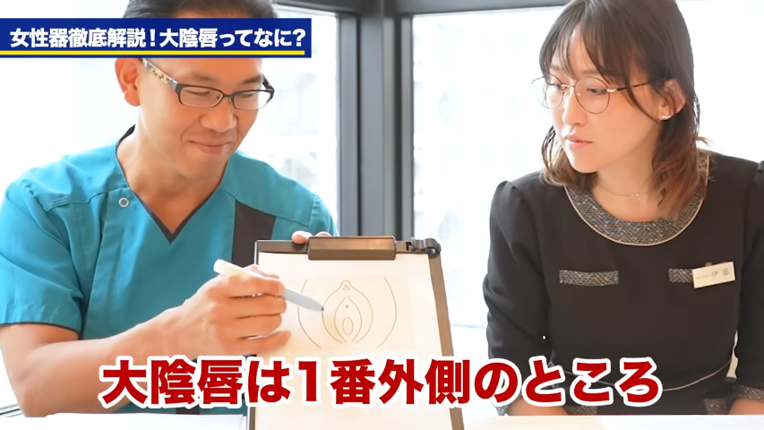 橘:元神ちゃんねるでは、これまでも女性器についてですね、小陰唇とかクリトリスとか、いろんな女性器の解説動画っていうのを出してきたんですけれども、意外と好評でして、男性の皆さん、女性期の構造についてのご興味っていうのは非常におありだと思いますので、今回はですね、それに続きまして大陰唇の解説ということで、ちょっとお送りしていきたいなと思います。女性期にもいろいろな部位があると思うのですが、今回はちょっとそこに絞ってですね、先生にいろいろと解説をしていただきたいなと思うんですけれども。まずこの大陰唇とは何かというところからお願いしたいと思うんですが。