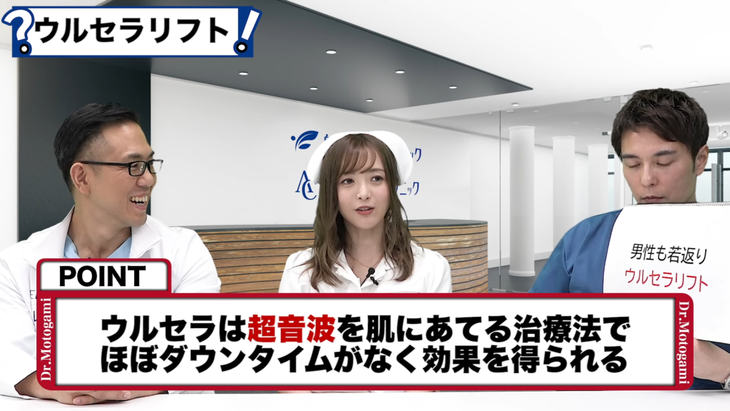 並木優:糸を入れる手術でもなく機械をあてるだけなんですね。ほぼダウンタイムがなくて、肌の治療くらいの感覚で軽いものなので。でも効果はあるっていうらしいです。